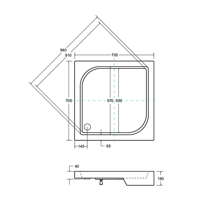 Brodzik do kabiny prysznicowej wykonany z akrylu sanitarnego. Nowoczesne kształty brodzików prysznicowych pozwalają dopasować się do większości kabin prysznicowych.