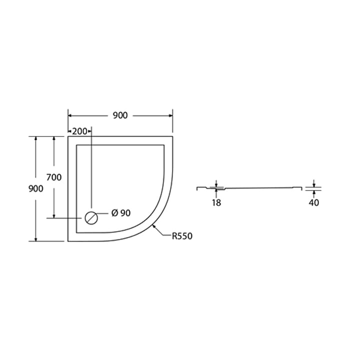 Brodzik półokrągły z tworzywa SMC model 90 SMC03