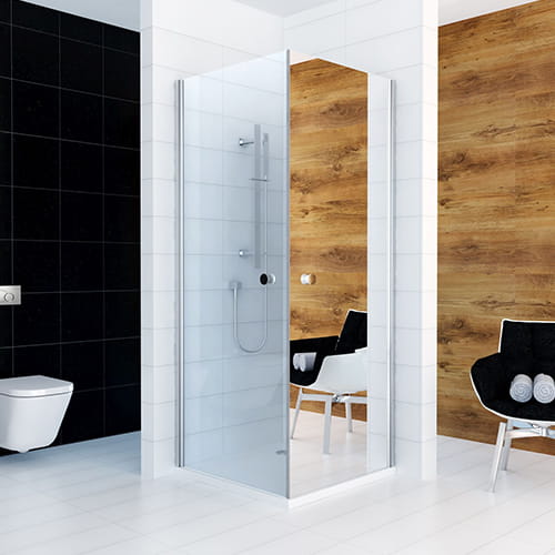 Kabina prysznicowa kwadratowa dwudrzwiowa z lustrem po prawej FRESH LINE 90 Transparent chrom BK122PLLT